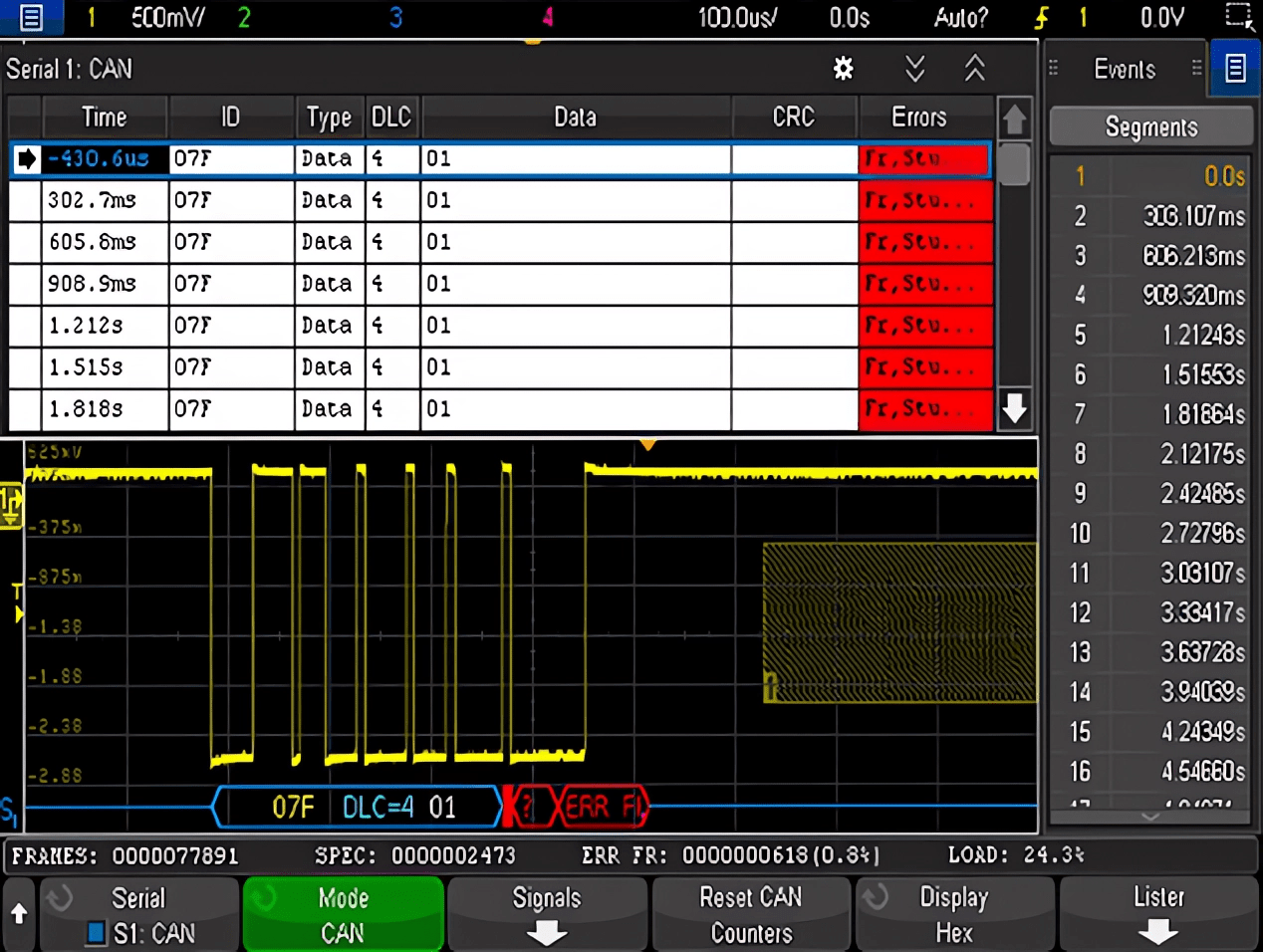 • 物理層測試:示波器在測試和表征汽車串行總線的物理層方面起著至關重要的作用。可以對串行總線上的信號進行實時監測和分析,以確保信號質量符合標準要求,并且能夠正確傳輸數據。